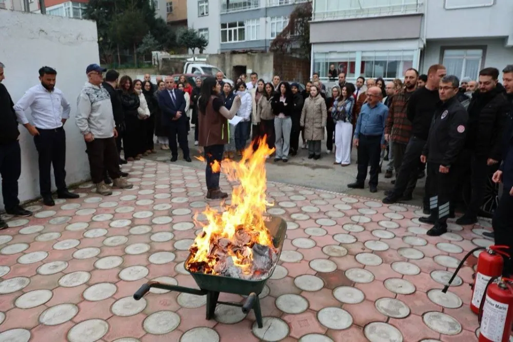 Edinilen bilgiye göre, hizmet binasında senaryo gereği yangın alarmının çalmasıyla başlayan tatbikatta, bina içerisindeki personel kısa sürede tahliye edildi. Güvenli bölge olarak belirlenen toplanma alanında bir araya gelen personele, yangına müdahale teknikleri ve yangın söndürme tüplerinin kullanımı uygulamalı olarak anlatıldı.
