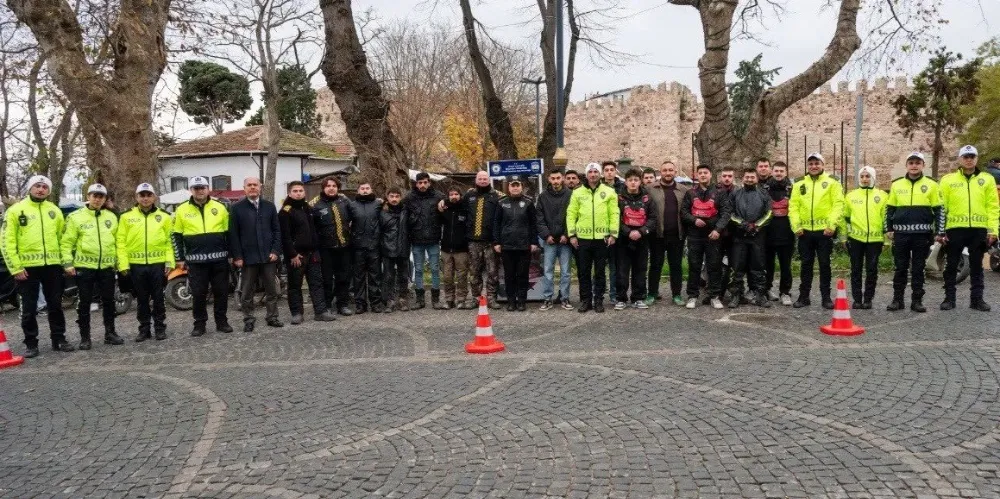 Öte yandan, soğuk hava koşullarında il genelinde görev yapan motosikletli kuryelerin soğuktan korunmalarına katkı sağlamak amacıyla katılımcılara boyunluk hediye edildi.