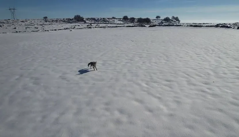 Siverek'e bağlı Beşyamaç kırsal mahallesinde etkili olan kar yağışı sonrası karda ilerlemekte zorlanan bir tilki, bir vatandaş tarafından havadan görüntülendi. Dronu fark eden tilki, önce kısa süre durarak şaşkın bakışlarla dronu inceledi, ardından panikleyerek kaçmaya başladı.
