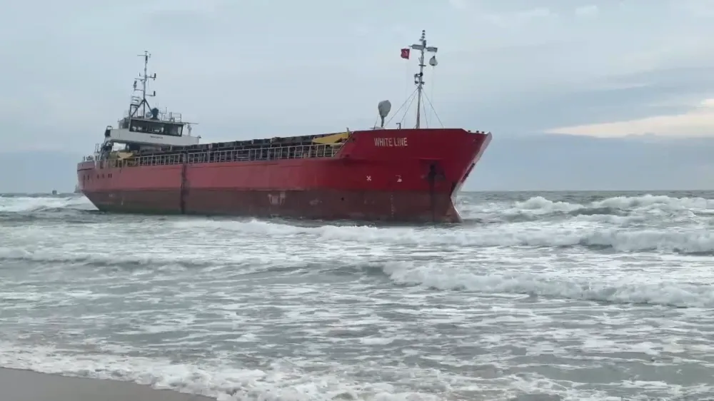 Marmara Denizi’nde etkisini sürdüren kuvvetli rüzgar ve fırtına deniz ulaşımını olumsuz etkilemeye devam ediyor. Cumartesi günü saat 14.30 sıralarında yük almak amacıyla Martaş Limanı’na yanaşmaya çalışan Palau bayraklı "White Line" isimli kuru yük gemisi, olumsuz hava şartları nedeniyle sürüklenerek Santos Plajı açıklarında karaya oturdu.