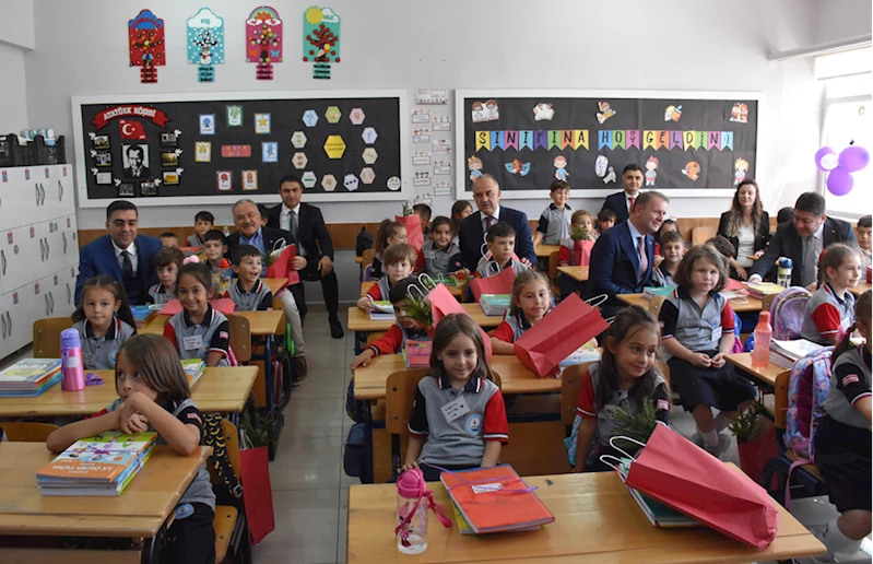 Törenin ardından beraberindekilerle sınıfları gezen Vali Yıldırım, sohbet ettiği öğrencilere kalem dağıttı.