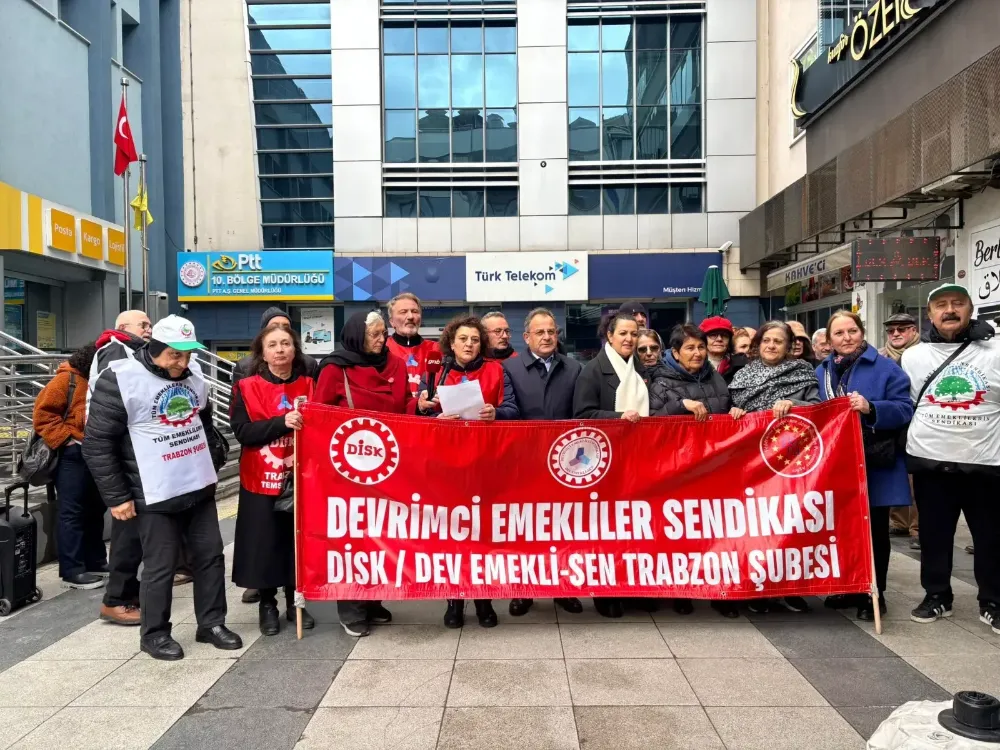 Emekliler ve sendika üyeleri, Meydan Parkı’nda bir araya gelerek basın açıklaması yaptı. Grup adına konuşan DİSK/Emekli-Sen Trabzon Şube Başkanı Dilek Fidan, ikramiyenin “emeklinin onuruyla dalga geçmek” olduğunu ifade ederek, “Emeklinin sabır taşı çatladı. Bayram müjdesi diye sunulan 4 bin lira, bir ikramiye değil utanç vesikasıdır” dedi.