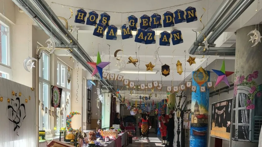 Okul koridorları, adeta bir zaman tüneline dönüştürülerek katılımcılara unutulmaya yüz tutmuş Türk gelenekleri yaşatıldı. Etkinlikte Ramazan davulu eşliğinde maniler çalındı, Hacivat ve Karagöz gösterisi sahnelendi. Rengarenk Osmanlı macunu ve şerbet ikramları, hat yazıları ve Ramazan’a özel dekorlar stantlarda yer aldı. Değerler Eğitimi Kulübü öğrencileri tarafından hazırlanan görseller ise ayın önemini ziyaretçilere aktardı.