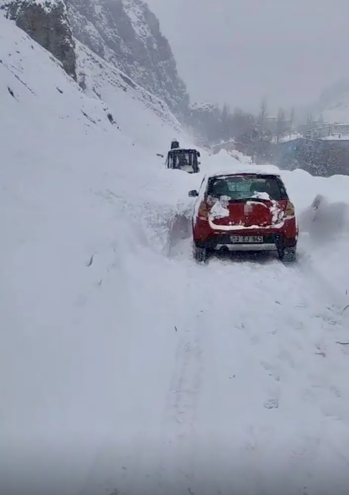 Çatak ilçesinde mahalle yoluna düşen çığ, yoldaki aracı son anda tehlikeden kurtardı; iş makineleri yolı kısa sürede açtı.