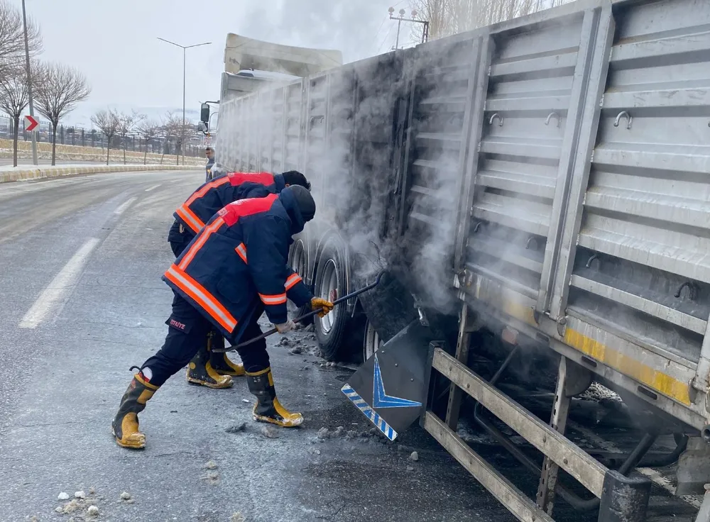 Edinilen bilgiye göre olay, Edremit Su Sporları binası yanında meydana geldi. Seyir halindeki bir tırın balatalarının aşırı ısınması sonucu lastikler alev aldı. Durumu fark eden sürücü tırı yol kenarına çekerek itfaiye ekiplerine haber verdi. Kısa sürede olay yerine giden Edremit İtfaiye Grup Amirliği ekipleri, yanan lastikleri söndürdü.