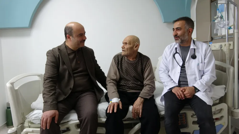 Tevfik Gezgen’in tedavisini yapan Dahiliye Doktoru İbrahim Aydın, hastanın yaklaşık 5-6 gün önce polikliniğe başvurduğunu belirterek, "Hastamızın nefes darlığı, öksürük, balgam, ateş şikayetleri vardı. Daha önce de kronik hastalıkları olan bir hastamız. Böbreklerde biraz yetmezlik tablosu vardı. Hastamızın son tahlillerinde enfeksiyon değerleri düşmüş. Akciğer enfeksiyonu azalmış ama henüz tam geçmediği için 2-3 gün daha hastanemizde yatırmaya devam edeceğiz. Şu an genel durumu iyi. Oksijen satürasyonları iyi. Belirgin bir nefes darlığı yok. Böbrek fonksiyonlarında düzelme var. Bu şekilde takibini yapıp bir aksilik çıkmazsa 2-3 gün sonra taburcu etmeyi düşünüyoruz" dedi.
