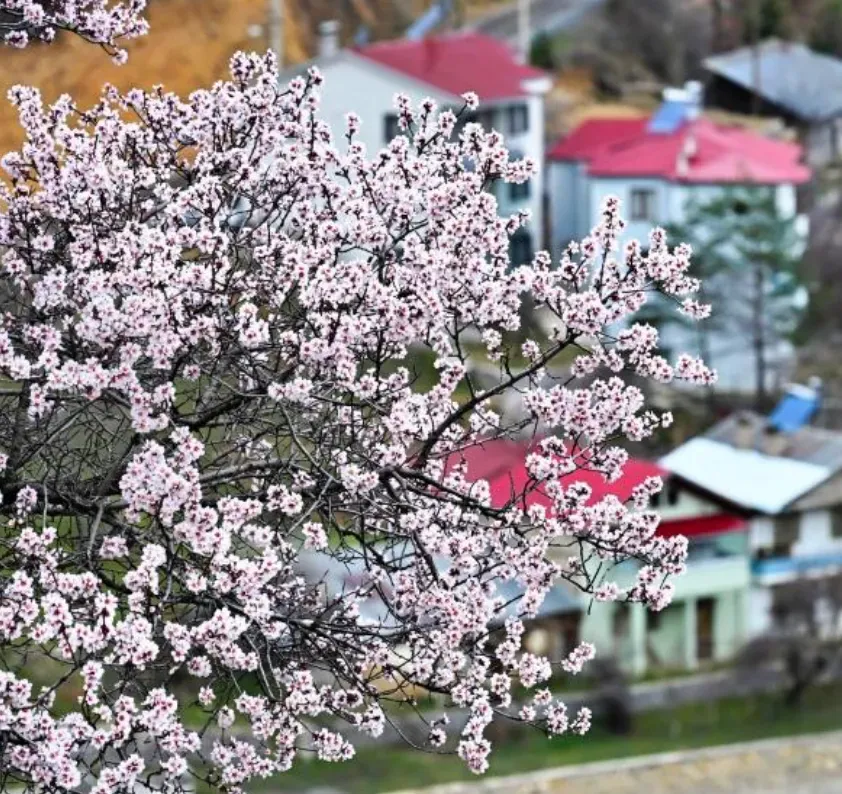 Öte yandan Harşit Çayı üzerinde yer alan Torul Barajı havzasında badem ve kayısı ağaçlarının çiçeklenmesiyle kartpostallık görüntüler oluştu. Karla kaplı dağların gölgesinde yeşeren doğa, bölgede kış ve baharın aynı anda yaşandığını gözler önüne serdi.