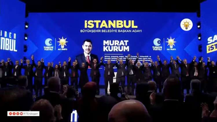 AK Parti aralarında İstanbul ve Bursa'nın da olduğu 11 büyükşehir ile 15 ilin belediye başkan adaylarını İstanbul Haliç Kongre Merkezi'nde düzenlenen toplantıda duyurdu. "Türkiye Yüzyılı şehirleri için hazırız kararlıyız" sloganıyla "Yeniden İstanbul Yeniden Ak Parti" mottosuyla adayları açıklayan Cumhurbaşkanı Erdoğan, "İstanbul muradına kavuşacak" diyerek İstanbul Milletvekili Murat Kurum'u açıkladı.