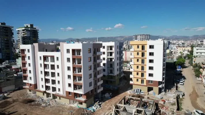 Mersin'in merkez Akdeniz ilçesi Barış Mahallesi'nde, inşaat çalışmalarında yüzde 65'i tamamlanan 415 konut ve 50 dükkanlık yerinde kentsel dönüşüm projesinde ilk anahtarların 2024'te teslimi hedefleniyor.
