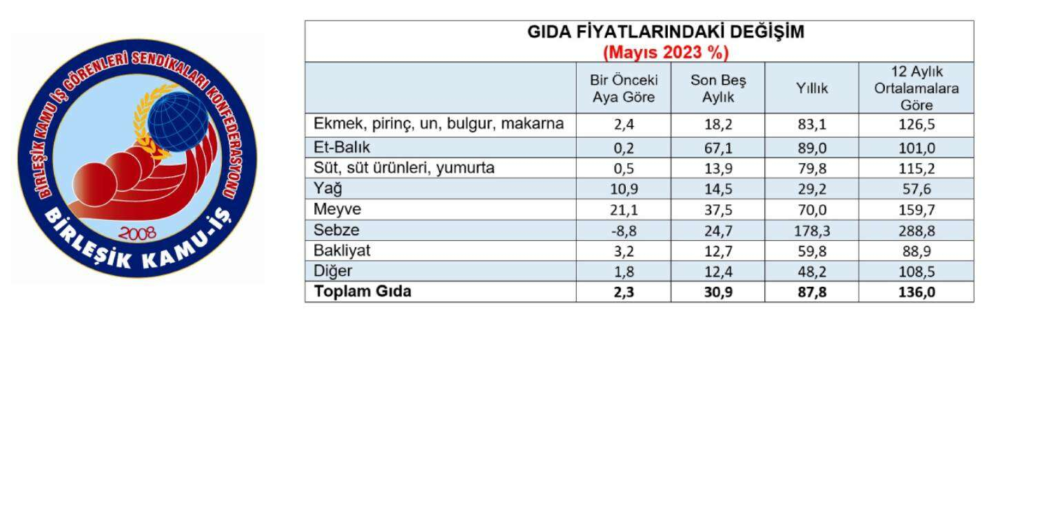Süt, yoğurt ve peynir için yapılması gereken harcama bir önceki aya göre 4 lira artarak 2 bin 771 liraya çıkarken, son bir yıllık dönemde ise 1.195 liralık artış oldu. Meyve için harcanması gereken para mayısta 182 lira, geçen yılın aynı ayına göre ise 441 lira artarak 980 lira oldu. Sebze harcaması da önceki aya göre 176 lira azaldı, geçen yılın aynı ayına göre ise 530 lira artarak 1.363 lira oldu.