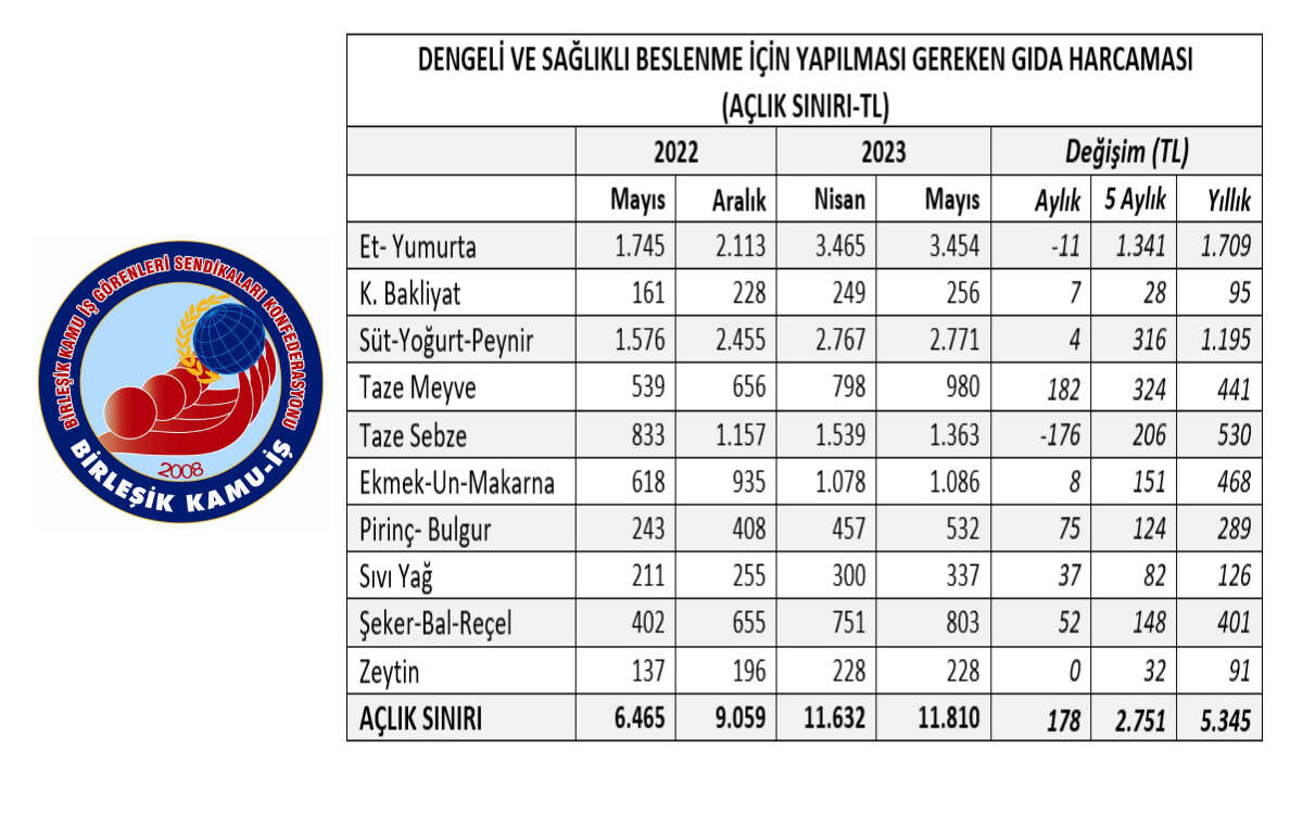 AÇLIK SINIRI MAYIS'TA BİR ÖNCEKİ AYA GÖRE 178 LİRA ARTTI