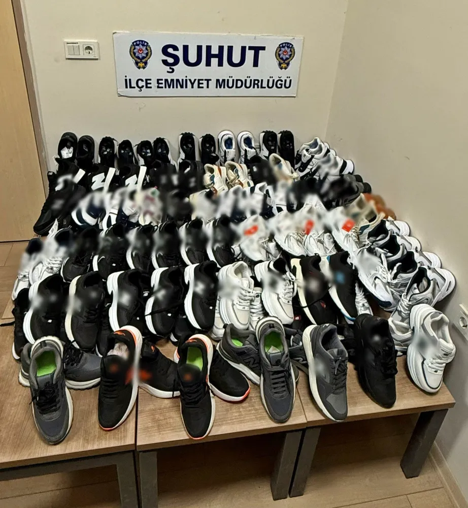 Şuhut ilçesinde düzenlenen operasyonda, polis ekipleri imitasyon olduğu değerlendirilen 60 çift ayakkabıya el koydu. Adli süreç başlatıldı, denetimler sürüyor.