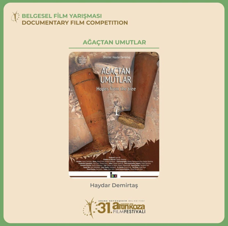 Haydar Demirtaş’ın yönetmenliğini yaptığı “Ağaçtan Umutlar”, 31 Uluslararası Adana Altın Koza Film Festivali’nin Türkiye’den yılın önemli belgesellerini buluşturduğu Belgesel Film Yarışması’nın finalistleri arasında yerini buldu. Bu yıl 65 belgeselin başvurduğu yarışmada 8 belgesel, Eylem Kaftan, Hakkı Kurtuluş ve Serdar Kökçeoğlu’dan oluşan jürinin karşısına çıkacak.