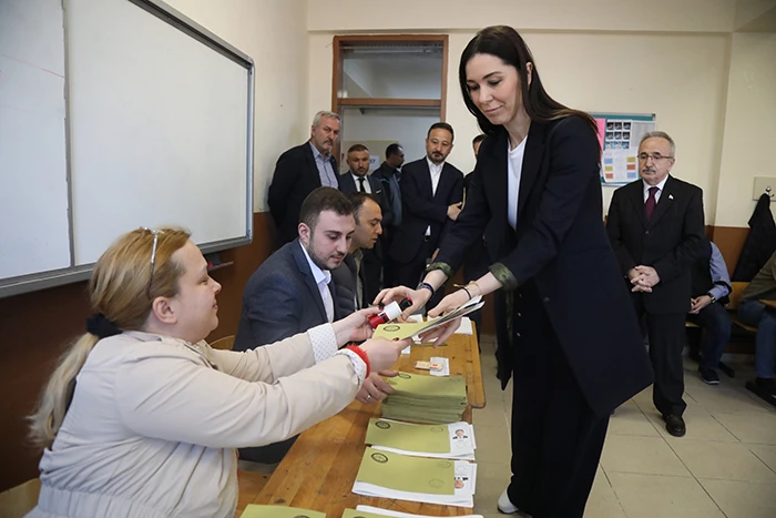 Karaaslan, oy vermek için Atatürk Ortaokulu'na geldi. Oyunu 1136 numaralı sandıkta kullanan Karaaslan, daha sonra sandıklardaki görevlilere başarı diledi.
