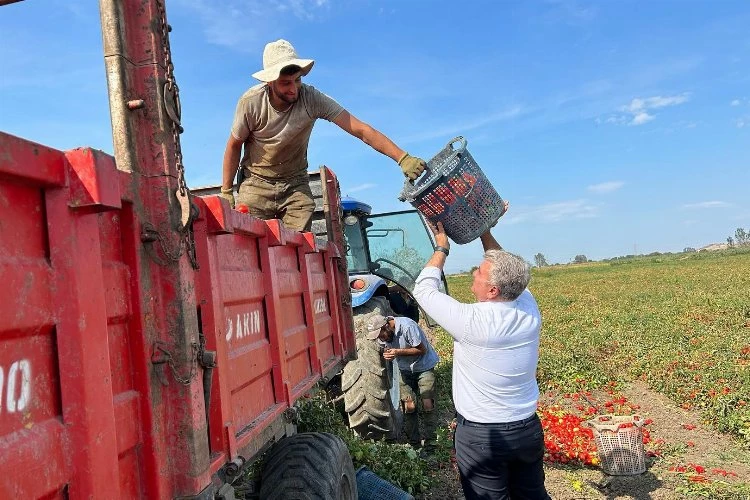 AK Parti Balıkesir Milletvekili ve Dışişleri Komisyonu Başkanvekili Dr. Mustafa Canbey, Susurluk ilçesi Göbel Mahallesi'nde çiftçileri ziyaret ederek, domates hasadına katıldı