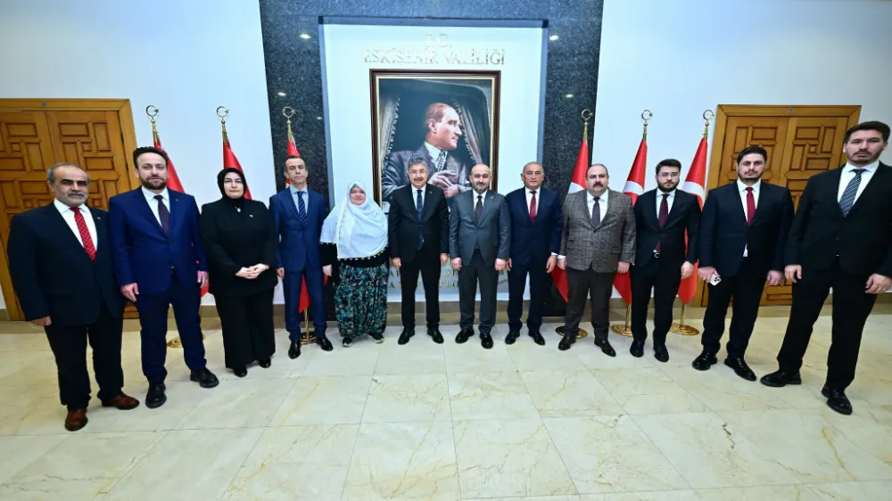 AK Parti İl Başkanı Gürhan Albayrak, Han Belediye Başkanı Bekir Belceli, İnönü Belediye Başkanı Serhat Hamamcı, Mihalgazi Belediye Başkanı Zeynep Güneş, Sarıcakaya Belediye Başkanı Ahmet Dönmez, AK Parti Eskişehir İl Sekreteri Esat Girgin, AK Parti Eskişehir İl Teşkilat Başkanı Erkan Koca, AK Parti Odunpazarı İlçe Başkanı Mustafa Kemal Bandırma, AK Parti Tepebaşı İlçe Başkanı Serhat Tunç, AK Parti İl Gençlik Kolları Başkanı Cihan Birsen ve AK Parti İl Kadın Kolları Başkanı Feriha Ertorun, Vali Dr. Erdinç Yılmaz'ı ziyaret ederek hayırlı olsun dileklerini iletti. Vali Yılmaz, ziyaretine gelen isimlerle toplu hatıra fotoğrafı çekindi.