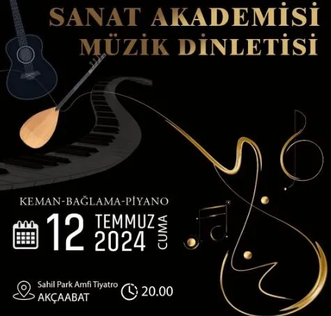 Sanat Akademisi'nin düzenlediği etkinlik, şehrin müzikseverlerini bir araya getirecek. Katılımın ücretsiz olduğu dinletide, öğrenciler çeşitli eserlerden oluşan zengin bir repertuvar sunacaklar. Müzik dinletisine tüm Akçaabatlılar davetlidir.