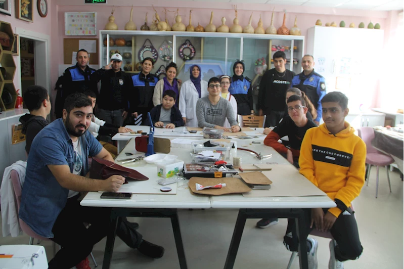 İl Emniyet Müdürlüğü Toplum Destekli Polislik Şube Müdürlüğünce, Osman Yıldırım Özel Eğitim Meslek Okulu'nun desteğiyle Çocuk ve Gençler Sosyal Koruma ve Destek Programı (ÇOGEB) kapsamında özel eğitim alan öğrenciler için deri ve rölyef kursu açıldı.
