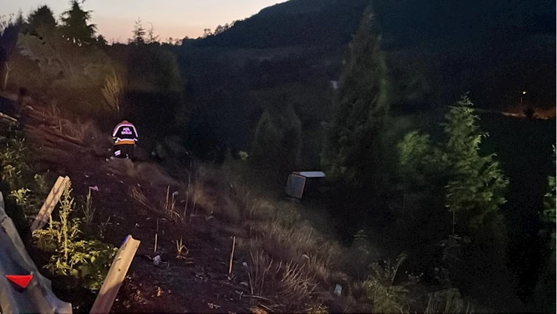 Kontrolden çıkan tır, yol kenarındaki bariyeri aşıp yaklaşık 100 metrelik şarampole devrildi.