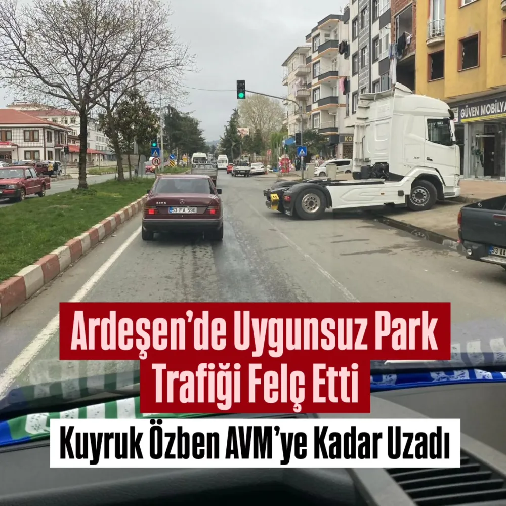 Ardeşen’in şehir merkezinde, ikinci şeride yapılan uygunsuz parklar, özellikle yoğun saatlerde trafiği tamamen kilitliyor. Bugün yaşanan bir olayda, uygunsuz şekilde park eden bir tır, yolun bir şeridini bloke ederek araçların Özben AVM’ye kadar uzun kuyruklar oluşturmasına neden oldu.