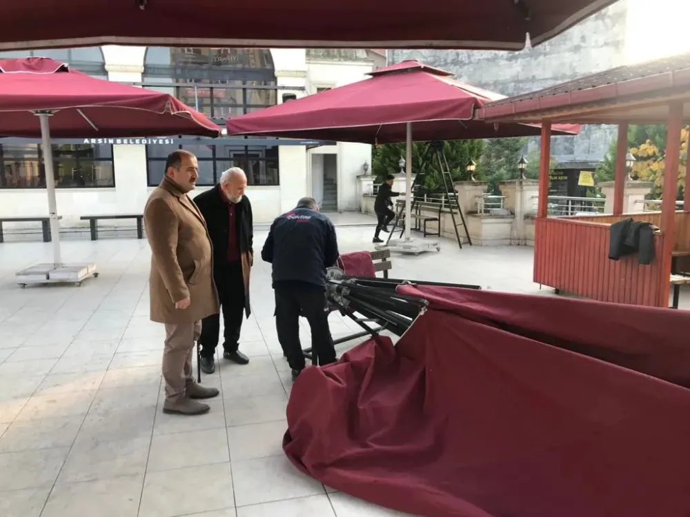 Arsin Belediyesi, Ulu Camii Avlusundaki Büyük Tente Şemsiyeleri Yeniliyor