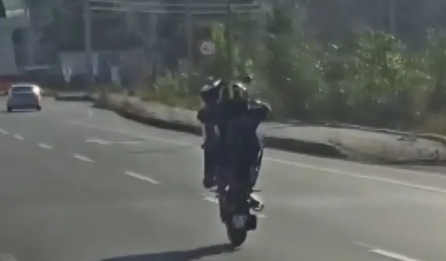 Bir motosiklet sürücüsünün seyir halindeyken ayakta ellerini bırakarak cep telefonuyla video çekmesi, diğer sürücüler tarafından kaydedildi ve büyük tepki topladı.