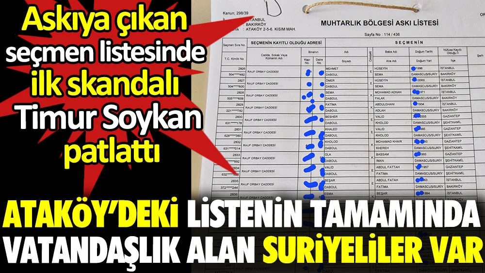 Gazeteci Timur Soykan bu durumu sosyal medya hesabından paylaştı. Soykan’ın paylaştığı seçmen askı listesinin tamamının vatandaşlık alan yabancılardan oluştuğu görüldü. Soykan paylaşımında;