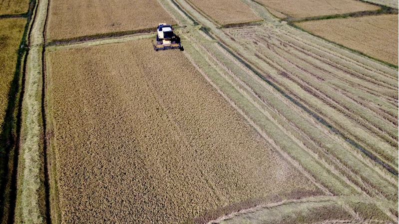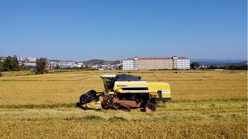 Bölgede mayıs ayında sulak alanda çeltik ekimi yapan üreticiler, hasat mesaisine başladı.