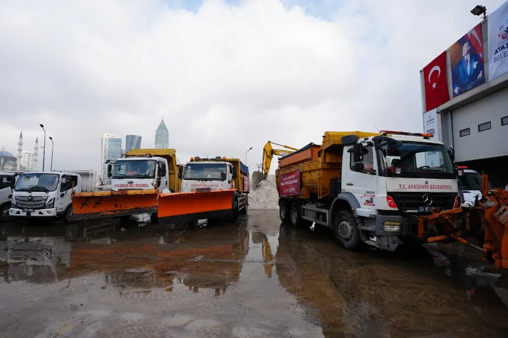 Beklenen kar yağışına karşı Ataşehir Belediyesi, 74 araç ve 195 kişilik ekip ile 7/24 kar küreme, tuzlama ve buzlanma önleyici çalışmalara hazır bekliyor.