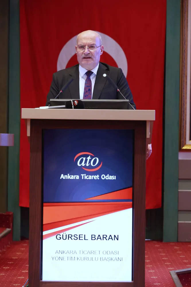 Toplantıda yaptığı konuşmada, ekonomi gündemine ilişkin konuları değerlendiren ve faaliyetleri hakkında bilgi veren Ankara Ticaret Odası Yönetim Kurulu Başkanı Gürsel Baran, tüm dünyanın 2026 yılına yeni normal olan ‘belirsizlik' ile başladığını söyledi. Baran, Türkiye'nin Avrupa Birliği pazarına erişimde, iş dünyasının yaşadığı vize sorunlarını aşmak ve kayıtlı ekonomiyi teşvik etmek amacıyla yeşil pasaport önerisinde bulundu.