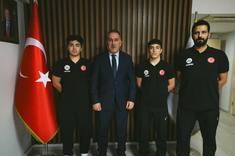 Aydın Gençlik ve Spor İl Müdürlüğü Spor Kulübü bünyesinde yetişen sporcular, Avrupa arenasında Türkiye’yi temsil etmeye hazırlanıyor. 3-9 Şubat 2026 tarihleri arasında Bulgaristan’ın Burgaz kentinde düzenlenecek Havalı Silahlar U-16 / U-18 Avrupa Şampiyonası’nda milli sporcular ay-yıldızlı forma ile mücadele edecek. Şampiyonada ülkeyi, Milli Takım Antrenörü Arda Batuhan Arslan eşliğinde Aydın Gençlik ve Spor İl Müdürlüğü Spor Kulübü sporcularından Ahmet Oğuz Sayar U-16 Tabanca, Şahin Yılmaz ise U-16 Tüfek kategorisinde temsil edecek. Genç sporcular, uzun süredir devam eden yoğun antrenman programlarının ardından Avrupa Şampiyonası için tüm hazırlıklarını tamamladı. Öte yandan 9-14 Şubat 2026 tarihleri arasında yine Bulgaristan’ın Burgaz kentinde gerçekleştirilecek Gençler Avrupa Şampiyonası’nda Ahmet Oğuz Sayar, Gençler Kategorisi’nde Türkiye adına atış yapacak. Şampiyonalar öncesinde milli takım antrenörü ve sporcular, Aydın Gençlik ve Spor İl Müdürü Serhat Yığmatepe'yi ziyaret etti. İl Müdürü Yığmatepe, Aydın’ı ve Türkiye’yi temsil edecek sporcular ile antrenörlerine başarılar dileyerek, ay-yıldızlı forma altında gösterecekleri mücadelenin gurur verici olduğunu ifade etti.