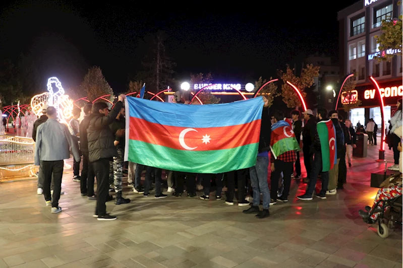 Ellerindeki Azerbaycan ve Türk bayraklarıyla Ermenistan'a karşı elde edilen zaferi eğlenerek kutlayan öğrenciler, daha sonra basın açıklaması yaptı.