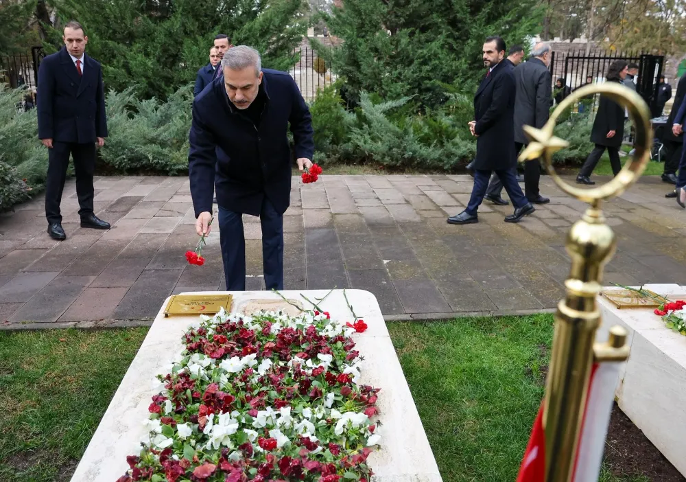 Dışişleri Bakanı Hakan Fidan, 16. Büyükelçiler Konferansı'nın resmi açılış töreni öncesi, Cebeci Asri Mezarlığı'ndaki Dışişleri Şehitliği'ni ziyaret etti. Törende, şehitler için Kur'an-ı Kerim okundu. Fidan, konuşmasının ardından şehitlerin kabirlerine karanfil bıraktı. Fidan'a Dışişleri Bakan Yardımcıları Berris Ekinci, Mehmet Kemal Bozay, Nuh Yılmaz ve Musa Kulaklıkaya ile Türkiye'nin yurt dışındaki temsilciliklerinde görev yapan Büyükelçiler eşlik etti.