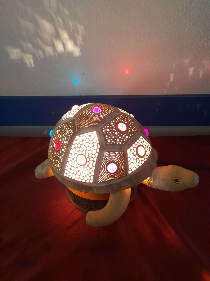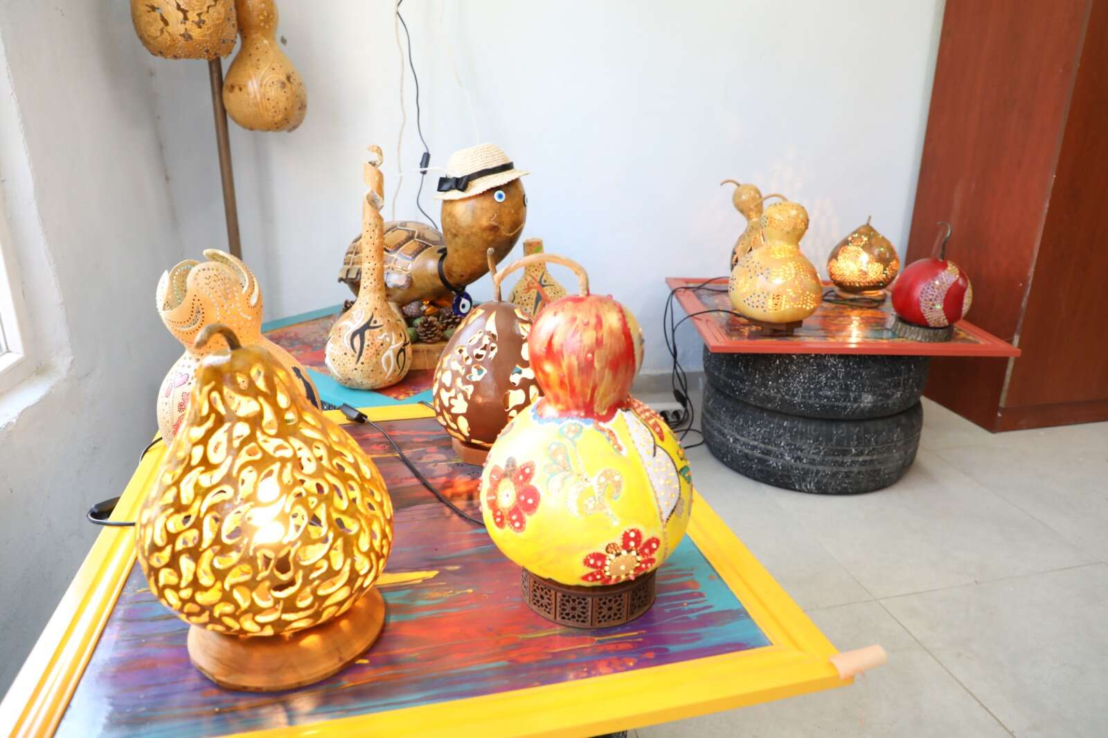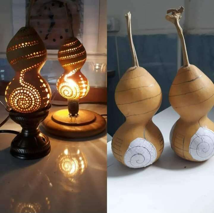 El emeği, göz nuru ve becerinin birleştiği çalışmalarla su kabakları ve iskeletler nokta nokta işleniyor. Işıklandırma, boyama ve vernikleme işleminden sonra birbirinden güzel avize, gece lambası, dekoratif lamba, abajur ve süs eşyası gibi ürünlere dönüşüyor. Sabırla işlenen ürünler birer sanat eseri haline geliyor.