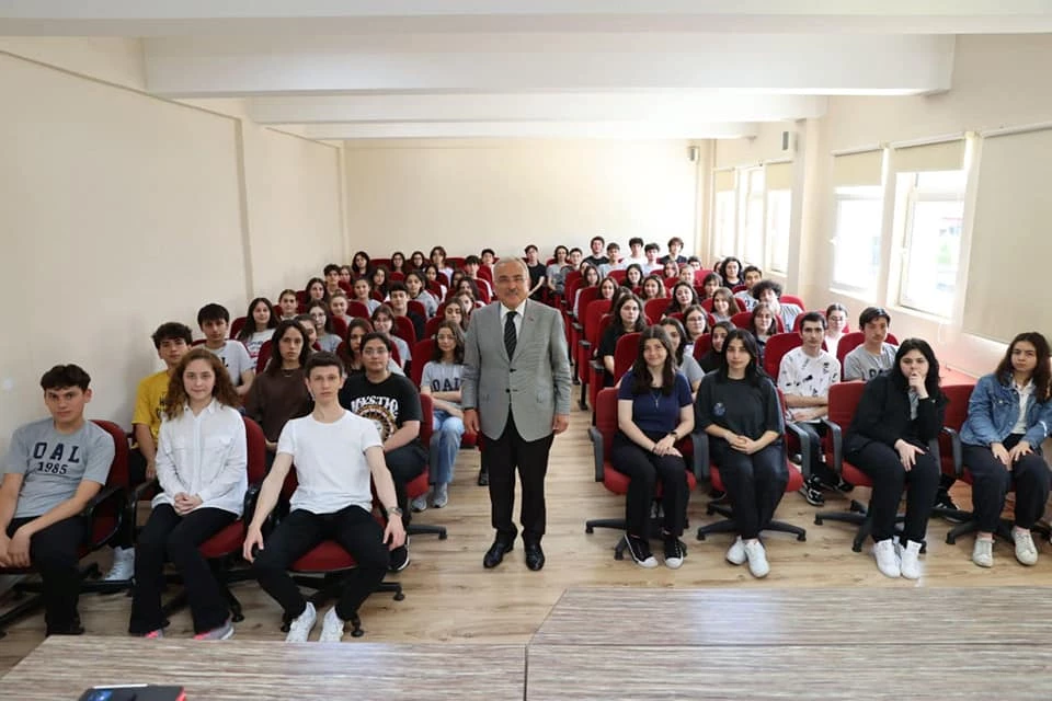 Öğrencilerin gelecek planlamalarını çağın gereklerine göre yapması tavsiyesinde bulunan Başkan Hilmi Güler, daha sonra öğretmen ve öğrencilerle sohbet ederek bilgi ve tecrübelerini paylaştı.