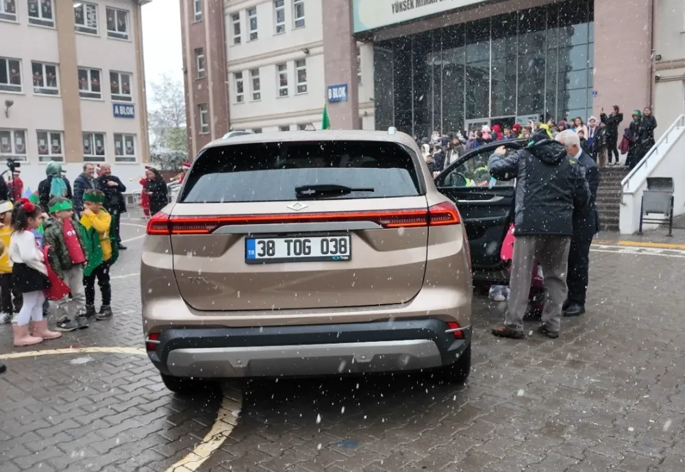 Kayseri Talas Yüksek Mimar Selçuk Karakimseli İlkokulu'nda 12-18 Aralık Yerli Malı Haftası etkinlikleri kapsamında anlamlı bir organizasyona imza atıldı. Kayseri Büyükşehir Belediyesi'ne gelen talep üzerine, Başkan Dr. Memduh Büyükkılıç'ın makam aracı olan yerli ve milli otomobil Togg, okul bahçesine getirildi.