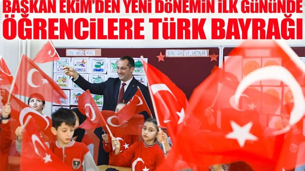 Başkan Ekim, yeni dönemin ilk dersinde işlenen “Bayrak Sevgisi” teması kapsamında öğrencilere Türk bayrağı dağıttı.