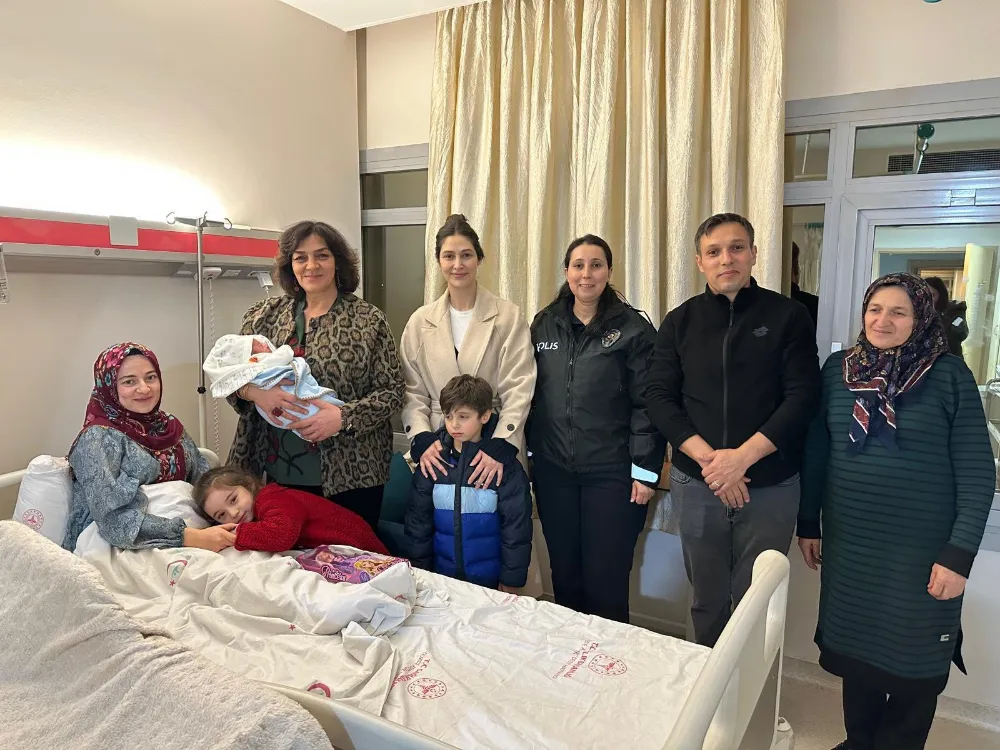 Düzce İl Emniyet Müdürü İbrahim Ergüder’in eşi POLED Düzce Şube Başkanı Şule Ergüder ve Sosyal Hizmetler Şube Müdürlüğü personeli, emniyet teşkilatında görevli Başkomiser Yusuf Çekerekli’yi, dünyaya gelen bebeği dolayısıyla ziyarette bulundu. Gerçekleşen buluşmada, aileye hayırlı olsun dilekleri iletilerek, yeni doğan bebeğe sağlık, mutluluk ve uzun ömür temennisi sunuldu. Samimi bir ortamda geçen görüşmede, mutluluğa ortak olunan aileyle bir süre sohbet edildi.