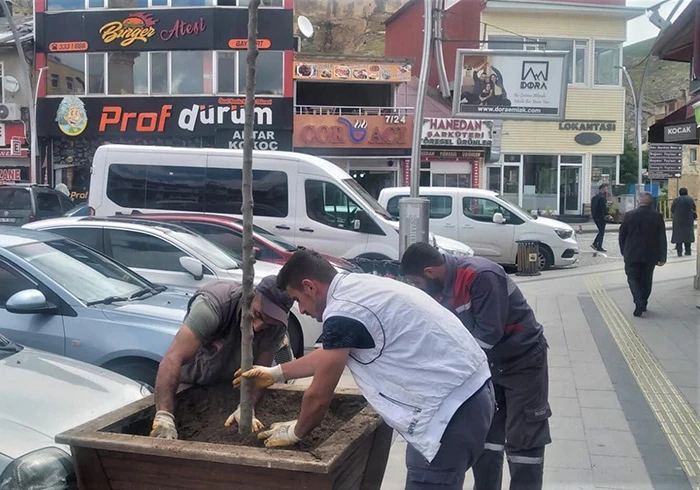 Bayburt Belediyesi Park ve Bahçeler Müdürlüğü, çevre dostu projeleriyle kentin yeşil dokusunu güçlendirmeye devam ediyor. Son olarak, ekipler Cumhuriyet Caddesi'nde bulunan saksılara ağaç dikimi gerçekleştirdi.