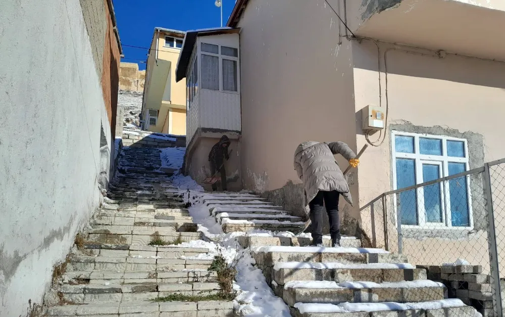 Belediye ekipleri, özellikle mahallelerden şehir merkezine ulaşımı sağlayan merdivenler ile dolmuş durakları çevresinde yoğun bir şekilde kar küreme ve tuzlama çalışmaları gerçekleştiriyor.