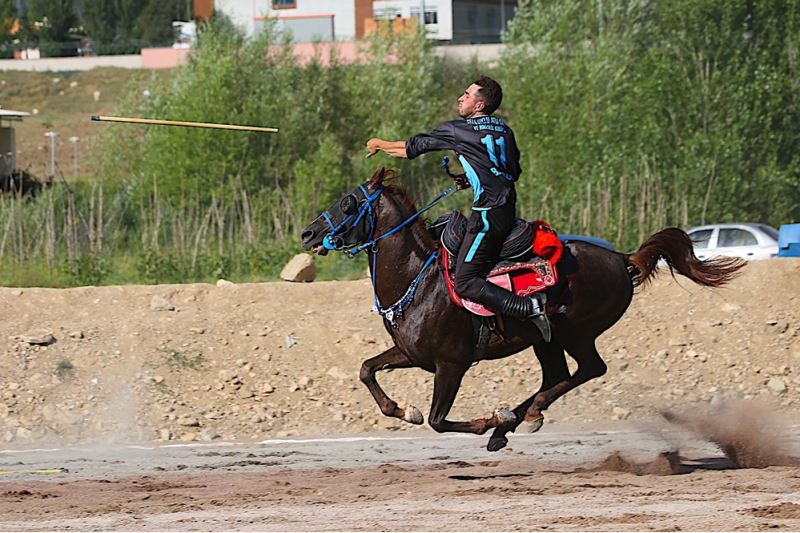 Altı kişiden oluşan ve iki takım halinde mücadele edilen gösterilerde, at üzerindeki sporcular ciritlerini rakibe karşı isabetli şekilde atmaya çalışarak, atlarına hakimiyetini sergiledi.