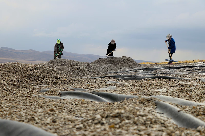 Güneşin altında kurutulan çekirdekler, daha sonra çuvallara doldurulup araçlara yüklenerek bölgeye en yakın fabrikaların eleme tesislerine götürülüyor.