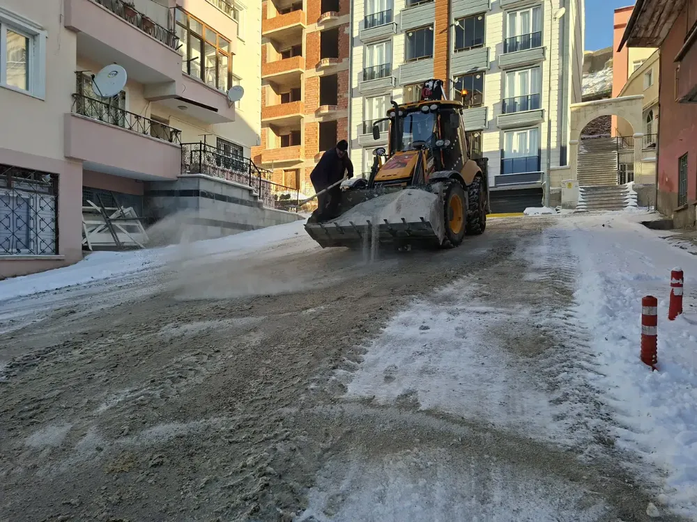 Gece boyunca etkili olan kar yağışının ardından Bayburt Belediyesi, gündüz saatlerinde de aralıksız mesai yaparak kaldırımlar, merdivenler ve sokaklarda kar temizliği, küreme ve tuzlama çalışmaları yürütüyor. Ekipler, özellikle buzlanma riski bulunan bölgelerde önlemler alarak yaya ve araç trafiğinin güvenliğini sağlamayı hedefliyor.