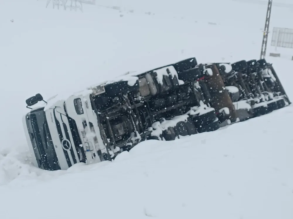 Edinilen bilgilere göre, kar ve tipi nedeniyle kayganlaşan yolda direksiyon hâkimiyetini kaybeden Sait Erten yönetimindeki 31 V 9316 plakalı tır, kontrolden çıkarak yol kenarındaki şarampole devrildi. Kazada sürücü yara almadan kurtulurken, olay yerine sevk edilen ekipler tarafından tırın bulunduğu yerden çıkarılması için çalışma başlatıldı.