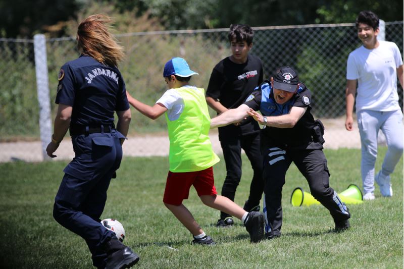 Daha sonra ok atan çocuklar, polis ve jandarma personeliyle futbol oynadı. Bazı çocuklar ise polis motosikletine bindirildi.