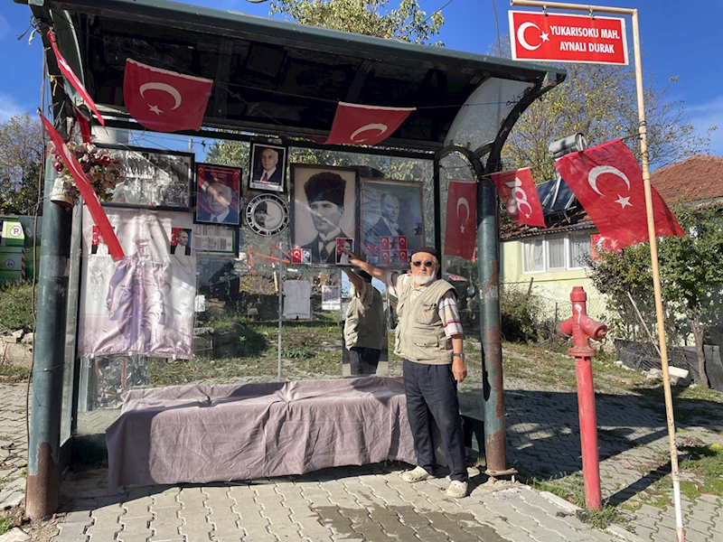 BOLU (AA) - Bolu'da 82 yaşındaki Şükrü Terzi, evinin yanındaki otobüs durağını 10 yıldır Türk bayrakları ve Atatürk resimleriyle süslüyor.