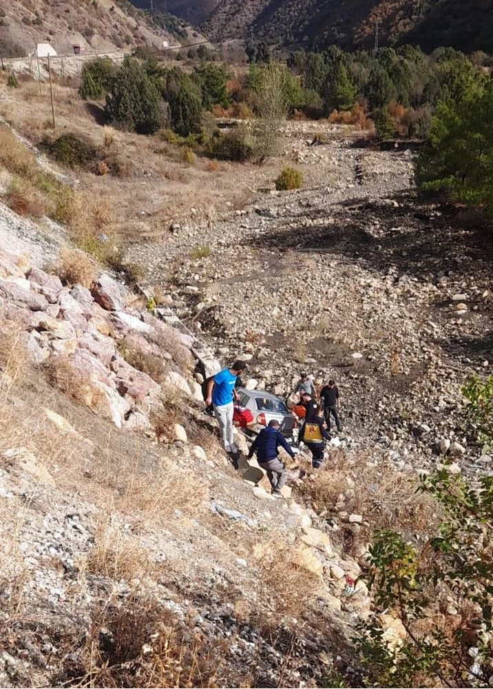Boyabat'ta dereye yuvarlanan otomobilin sürücüsü yaralandı