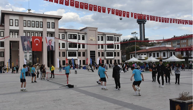 İlçe Gençlik ve Spor Müdürlüğü tarafından Hükümet Konağı önünde gerçekleştirilen programda çocuk ve gençlere yönelik çeşitli spor dalında yarışmalar ve oyunlar oynandı.