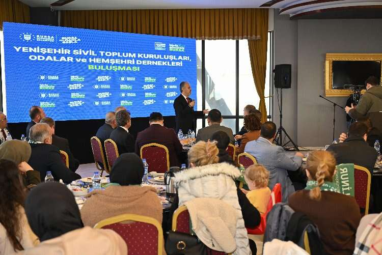 BURSA (İGFA) - Bursa Büyükşehir Belediye Başkanı Alinur Aktaş, Yenişehir ilçesinde sivil toplum kuruluşları, meslek odaları, hemşehri dernekleri temsilcileri ve muhtarlar biraraya geldi. İmren Izgara Düğün Salonu’ndaki toplantıya, Başkan Alinur Aktaş’ın yanı sıra Yenişehir Belediye Başkanı Davut Aydın, AK Parti İlçe Başkanı Mehmet İleri, MHP İlçe Başkanı Arif Eren, Yenişehir Belediyesi eski Başkanı Süleyman Çelik, siyasi parti temsilcileri ve meclis üyeleri de katıldı.