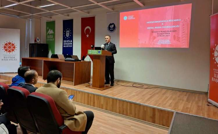 Bursa İnternet Gazetecileri tarafından düzenlenen İletişim ve Medya Akademisi’nde gazeteci adaylarına seminer veren Cumhurbaşkanlığı İletişim Başkanlığı Bursa Bölge Müdürü Ali Fuad Gölbaşı, dezenformasyon tehdidine dikkati çekti.